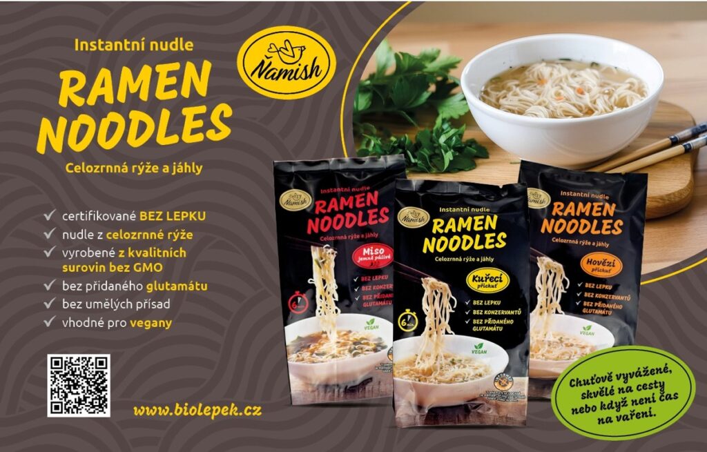 Instantní jídla bývají často spojována s obsahem lepku, existují však i varianty, které jsou vhodné pro osoby dodržující bezlepkovou dietu. Příkladem jsou instantní polévky značky Ňamish, které jsou založené na celozrnných rýžových a jáhlových nudlích. Jde o zdravou variantu čínských polévek bez lepku.